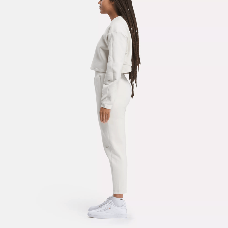 Go to and from the studio in sporty style. This women’s Reebok sweatshirt is made with a super-soft cotton blend that’s perfect worn as a layer to and from the gym, but sleek and polished enough for your favorite brunch spot. The slightly cropped length and overlap detail in the back give it a modern look.