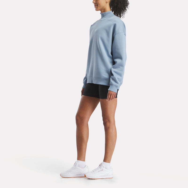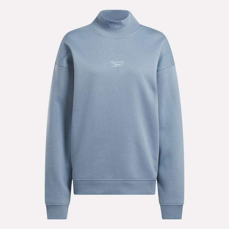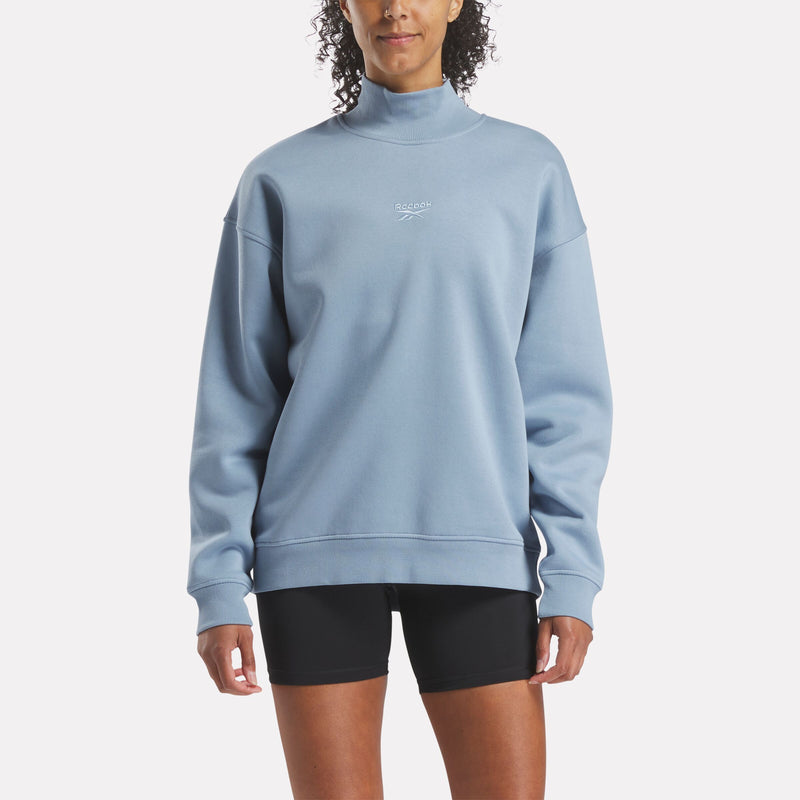 Wrap yourself in feel-good vibes with this women’s Reebok sweatshirt. Soft brush-back fleece keeps you warm on chilly days, whether you’re lounging or heading out. Extra length means extra coverage, and you get a roll neck for an extra-cozy touch.